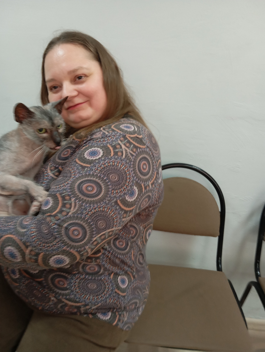 Здравствуйте, дорогие читатели моего блога. В пятницу мы ходили на выставку кошек, но это было больше, как контактный зоопарк. Было 5 кошек разных пород. 1) Ликой (от греч. λυκάνθρωπος, буквально — человек-волк, оборотень) — порода короткошёрстной кошки аборигенного происхождения. 1 Происхождение: в 2010 году на ферме в штате Виргиния у обычной домашней кошки родилось двое необычных на вид котят. Шерсть на их телах росла неравномерно, оставляя некоторые участки практически лысыми. Кошка среднего размера. Коты вырастают до 4,5 кг, кошки — до 3,5 кг. Телосложение и размеры схожи со сфинксами. Голова средних размеров, морда клиновидная. Уши большие, имеют треугольную форму, стоят ровно, немного закруглены. Глаза миндалевидной формы. Окрас радужки допустим разнообразным — серый, золотистый, изумрудный, серый с голубым, пепельно-голубой, медно-жёлтый. Вокруг глаз шерсти нет. Грудная клетка расширена, спина приподнимается форме дуги. Особенности: полное отсутствие подшёрстка, очень редкие