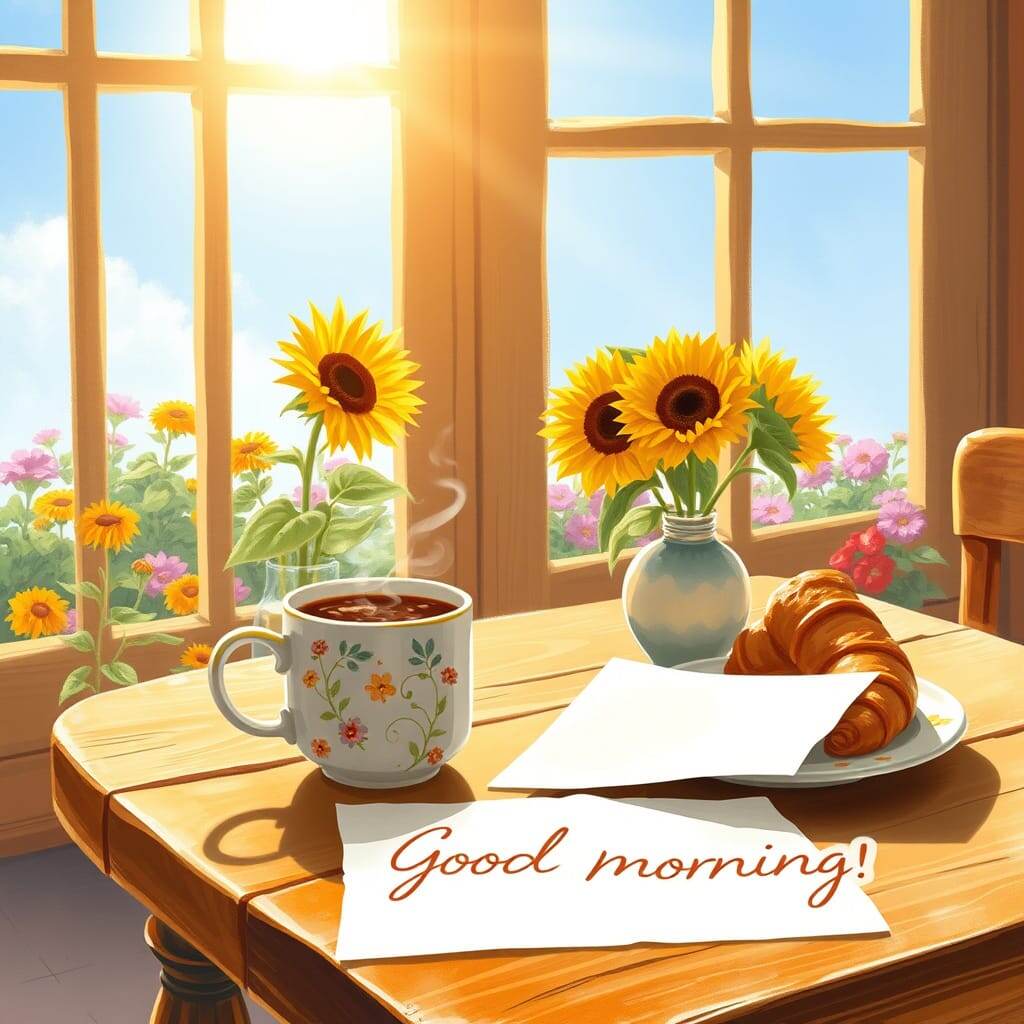 - Доброе утро! Пусть сегодняшний день будет как первый луч солнца — ярким, тёплым и полным надежд. Пусть каждое ваше утро начинается с улыбки, а каждый день приносит радость и новые возможности. Пусть кофе будет крепким, мысли — ясными, а сердце — лёгким. Встречайте этот день с уверенностью, ведь он создан специально для вас
