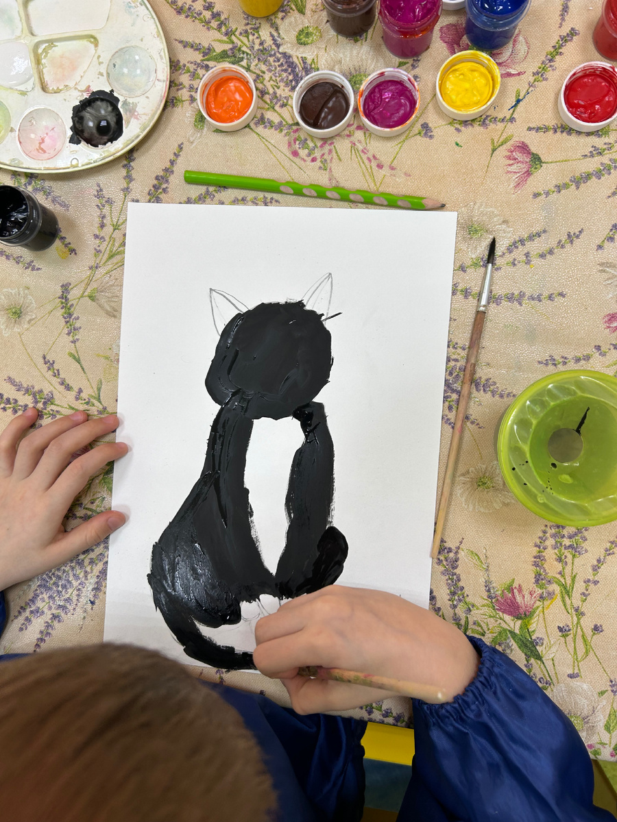 Простым карандашом ребята наметили эскиз кошки 🐈. Раскрасили кошку гуашью, цвет выбирали на свой вкус. Пока кошечки подсыхали, раскрасили подоконник и фон. Наша кошка 🐈 сидит на окошке, поэтому мы нарисовали занавеску. За окном, конечно, голубой фон, у нас это зимний пейзаж ❄️. А пока фон подсыхал, мы продолжили дорисовывать кошек: белая грудь, лапки, глаза, нос, ушки. Ребята разукрасили занавески узорами, добавили белый снежок ❄️. Дети постарше нарисовали ветки деревьев и посадили на них синичек. Кто-то нарисовал своей кошечке шляпку 👒 . Кошки получились у всех уникальные )) Рисовали дети 4-6 лет. Хотите рисовать вместе с нами? Приходите в изостудию «Кисточка» 🖌️ в Центре детского развития "Познавашкины" по адресу: ЖК Град Московский, ул. Радужная, 15. Подписывайтесь на канал и рисуйте просто 🫶. Что еще можно нарисовать с детьми зимой 👇:
