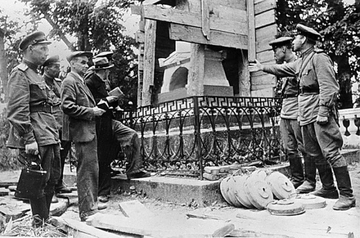 12 июля 1941 года фашистские оккупанты заняли Святогорский монастырь в Псковской области. В этом месте покоится прах Александра Сергеевича Пушкина. Спустя 3 года, с позором покидая захваченный монастырь, они заминировали могилу великого поэта, рассчитывая таким образом «посмеяться» над русскими людьми. К началу Великой Отечественной войны территория Святогорского Свято-Успенского монастыря вместе с могилой Пушкина, расположенной в Одигитриевском приделе Успенского храма, входила в структуру музея-заповедника «Михайловское». В первые годы оккупации музей продолжал работать. Примечательно, что с творчеством Пушкина были знакомы даже самые далёкие от литературы солдаты Вермахта – в 1940 году они смотрели снятую в Третьем Рейхе экранизацию повести «Станционный смотритель».