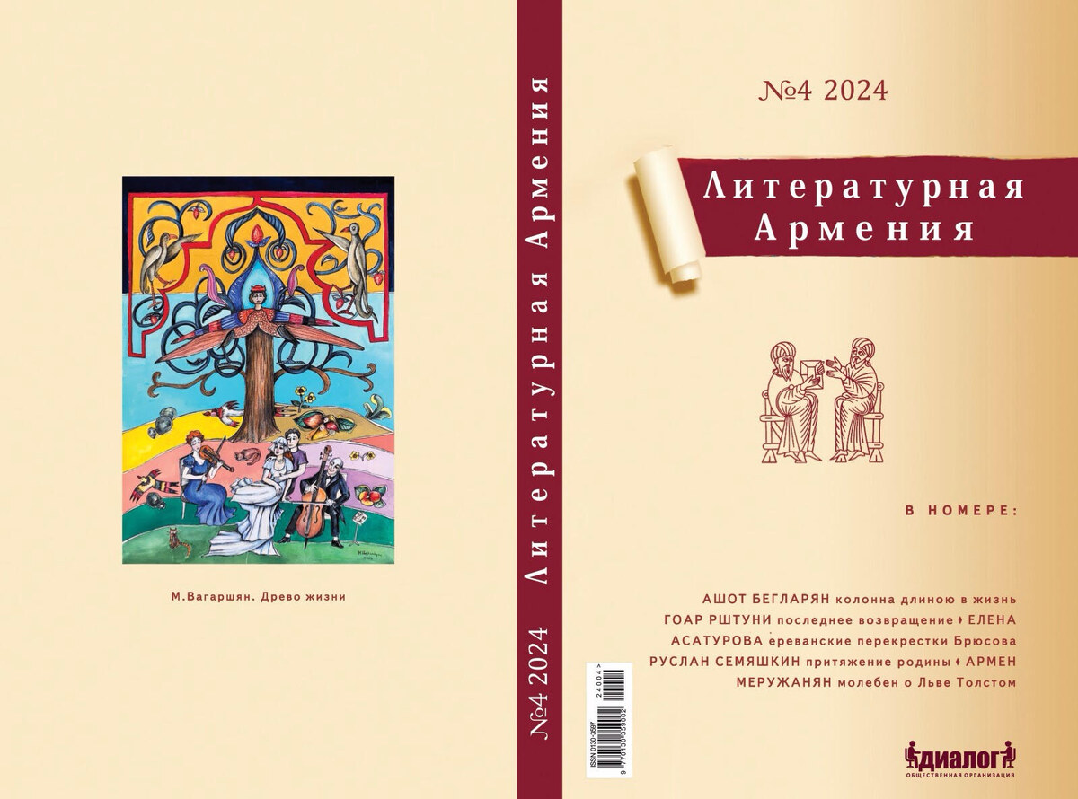 Вышедший в свет в декабре 2024 года четвертый номер литературно-художественного и общественно-политического журнала «Литературная Армения» продолжает свою миссию по поддержке и продвижению армянской литературы, как на русском языке, так и в переводах с армянского. Журнал, основанный в далеком 1959 году и долгое время оставшийся важным голосом русскоязычной литературы в Армении, сегодня продолжает свою традицию, активно публикуя работы современных авторов, в том числе армянских и русскоязычных писателей, чье творчество так или иначе связано с историей и культурой Армении. Отметим, что с января 2024 года журнал издается при поддерже общественной организации ДИАЛОГ и ее друзей.