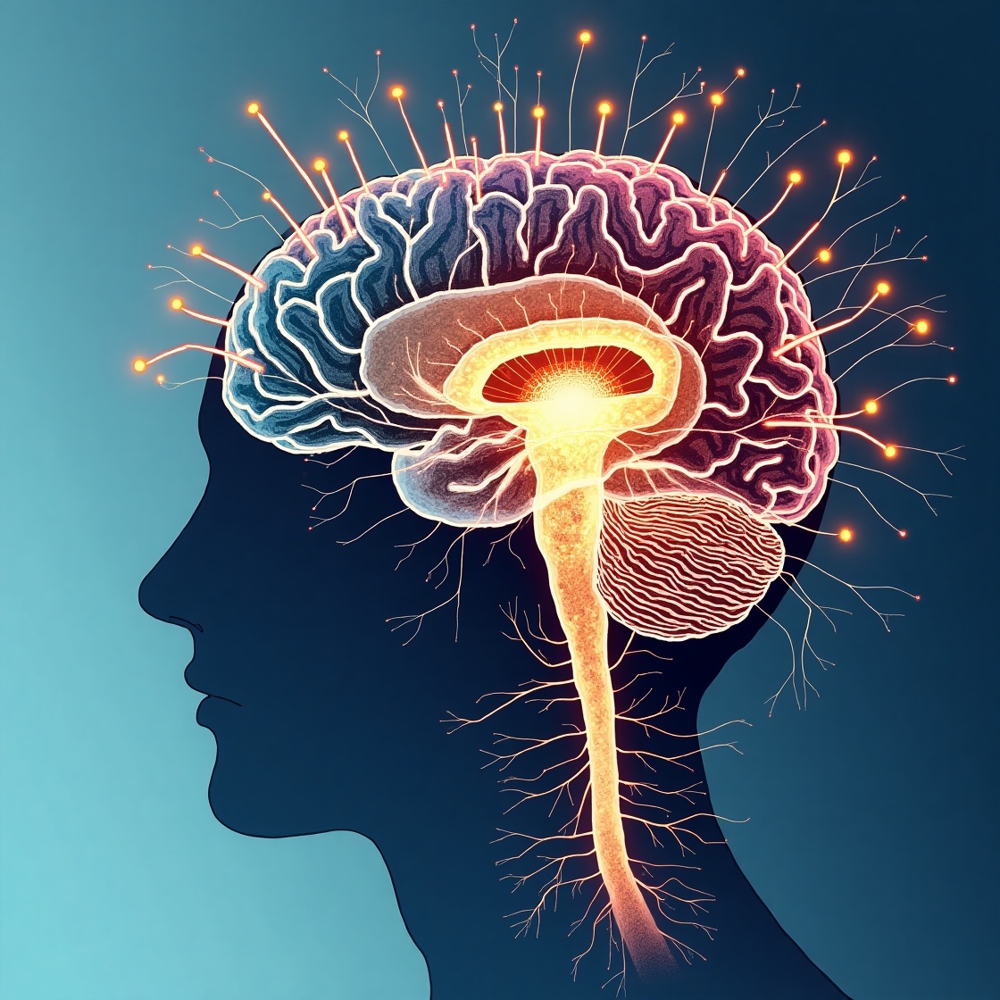 В мозге человека около 86 миллиардов нейронов, и каждый из них может соединяться с тысячами других через синапсы. Когда человек думает, нейроны обмениваются электрическими импульсами и химическими веществами – нейромедиаторами. - Электрическая активность мозга