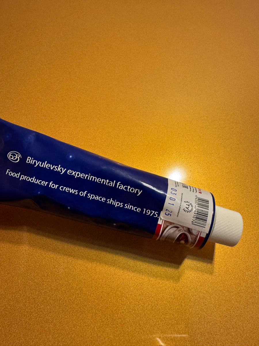 Как ни странно, космосуп – это вкусно. Стоит, правда, 800 руб. за тюбик. И не уверен, что его можно просто где-то купить: мне привезла Катя, которая относительно случайно оказалась в Звёздном городке.