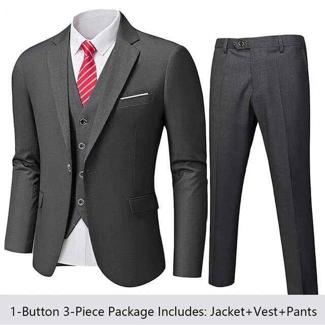 Мужские деловые костюмы – это идеальное решение для тех, кто ценит стиль и комфорт в сочетании с элегантностью. Эти свадебные пиджаки в комплекте с жилетом и брюками созданы для уверенных в себе мужчин, которые хотят выглядеть безупречно в любой ситуации. Изготовленные из высококачественного полиэстера, костюмы обеспечивают отличную посадку и свободу движений, что делает их идеальными как для формальных мероприятий, так и для повседневных встреч. Однобортная застежка придает образу строгость и классический шарм, а разнообразие размеров позволяет каждому выбрать подходящий вариант.