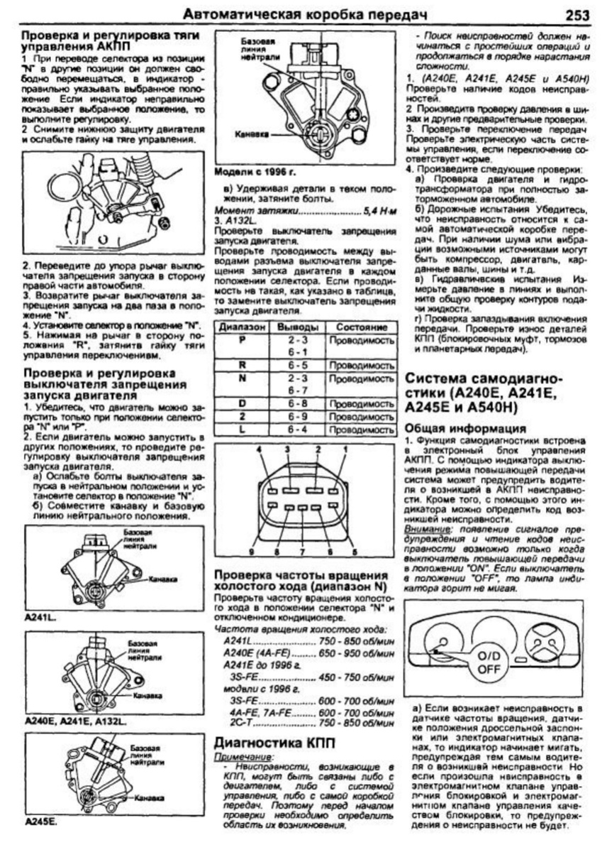 Самодиагностика Акпп Toyota CORONA, CALDINA ,CORONA EXIV ,CORONA PREMIO Модели 2WD и 4WD 1992-1998гг