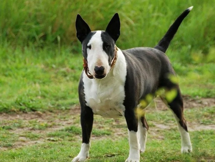 Бультерьер — порода собак, относящаяся к группе терьеров. Выведена в Великобритании в середине XIX века на основе бульдогов и белых английских терьеров. Предназначалась для собачьих боёв и травли быков. Первый стандарт принят в 1887 году. В Россию завезена в 1970-х годах. Внешний вид: ловкая и сильная собака с объёмной рельефной мускулатурой. Высота в холке 40–45 см, масса около 25 кг (у карликового бультерьера — до 35,5 см и до 8 кг соответственно). Голова яйцеобразной формы, с мощными челюстями. Глаза глубоко посаженные, маленькие, треугольные. Шерсть короткая. Окрас: белый, тигровый, трёхцветный, рыжий; цветные варианты обычно с белыми отметинами. Характер: отважен, темпераментен, малочувствителен к боли. Нуждается в умелом и строгом воспитании. Некоторые плюсы: верность и преданность владельцу, выносливость и сила, любовь к детям, уравновешенность, средний размер, позволяющий держать собаку в квартире. Некоторые минусы: необходимость своевременной социализации, плохо перено