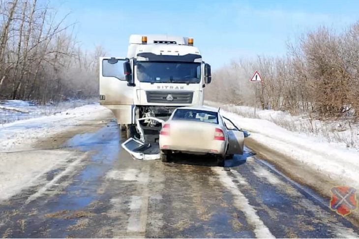 В Волгоградской области водитель легковушки погиб в лобовом ДТП с тягачом