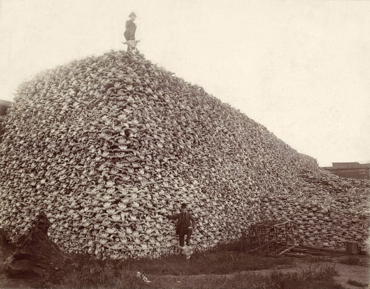 Если бы Василий Верещагин был анималистом, возможно, его "Апофеоз Войны" выглядел бы так. Его картина была написана в 1871 году. Фото сделано два десятилетия спустя в 1892 году. Несмотря на то, что это черепа бизонов, а не людей, это фото можно тоже назвать апофеозом войны. Дело в том, что бизоны были основным пищевым ресурсом индейцев, обитавших на Великих Равнинах. Вот что писал о бизонах внук индейского вождя одного из племён лакота Джон Файр Хромой Олень (на фото) "Бизон давал нам все, что нам было нужно. Без него мы были никем. Наши типи были сделаны из его шкуры. Его шкура была нашей кроватью, нашим одеялом, нашим зимним пальто. Это был наш барабан, пульсирующий всю ночь, живой, священный. Из его шкуры мы делали наши бурдюки для воды. Его плоть укрепляла нас, становилась плотью от нашей плоти. Ни малейшая ее часть не пропадала зря. Его желудок, раскаленный камень, брошенный в него, стал нашим котлом для супа. Его рога были нашими ложками, кости — нашими ножами, шилами и иглами дл