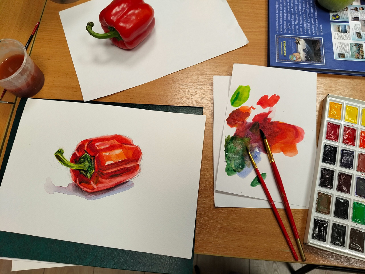 Писали с учениками овощи и фрукты с натуры 🎨 Начав преподавать, я поняла, что, обучая кого-то, сам учишься в 100 раз быстрее. Нет возможности полениться и забить на что-то Ну и дополнительно, я никогда в жизни так много не рисовала 😅 Когда у тебя 15 уроков в неделю, и на каждом ты рисуешь по несколько работ, в любом случае "набиваешь" руку 🎨
