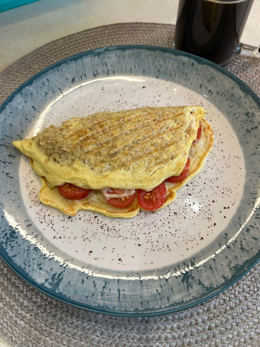 Овсяноблин Когда у меня всего 5 минут свободного времени, то на завтрак я делаю овсяноблин, начинка всегда по желанию или исходя из того что есть в холодильнике. Сегодня у меня овсяноблинчик с сыром и помидорками черри. Овсянка-30 гр яйцо молоко-20 мл соль начинка: сыр-20 гр, помидоры черри-3 шт Выложить начинку на половину блинчика и накрыть Это очень вкусно и быстро😊