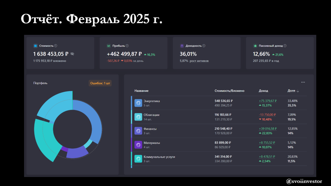 Итоги февраля 2025 г. Покупка/продажа активов. Поступление купонного дохода
