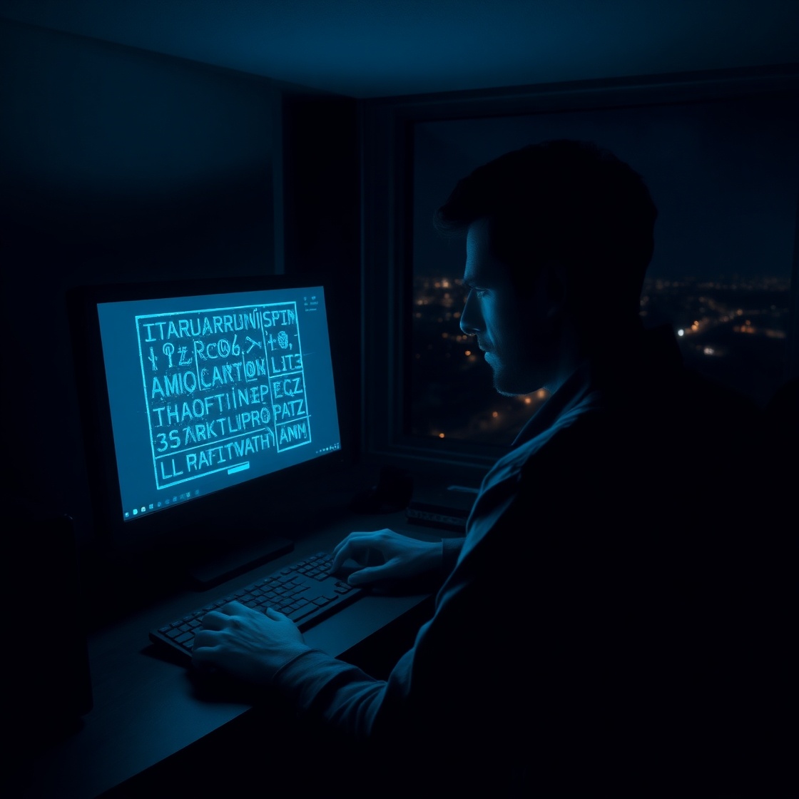 Лиза щёлкнула выключателем, и слабый свет лампы залил полумрак офиса. За окном лил дождь, стуча каплями по стеклу. Она вздохнула, бросив взгляд на часы — 23:47. Ещё час, и она сможет наконец уйти домой. Марк, её коллега, сидел за своим столом, уткнувшись в монитор. Его лицо освещалось холодным синим светом экрана.