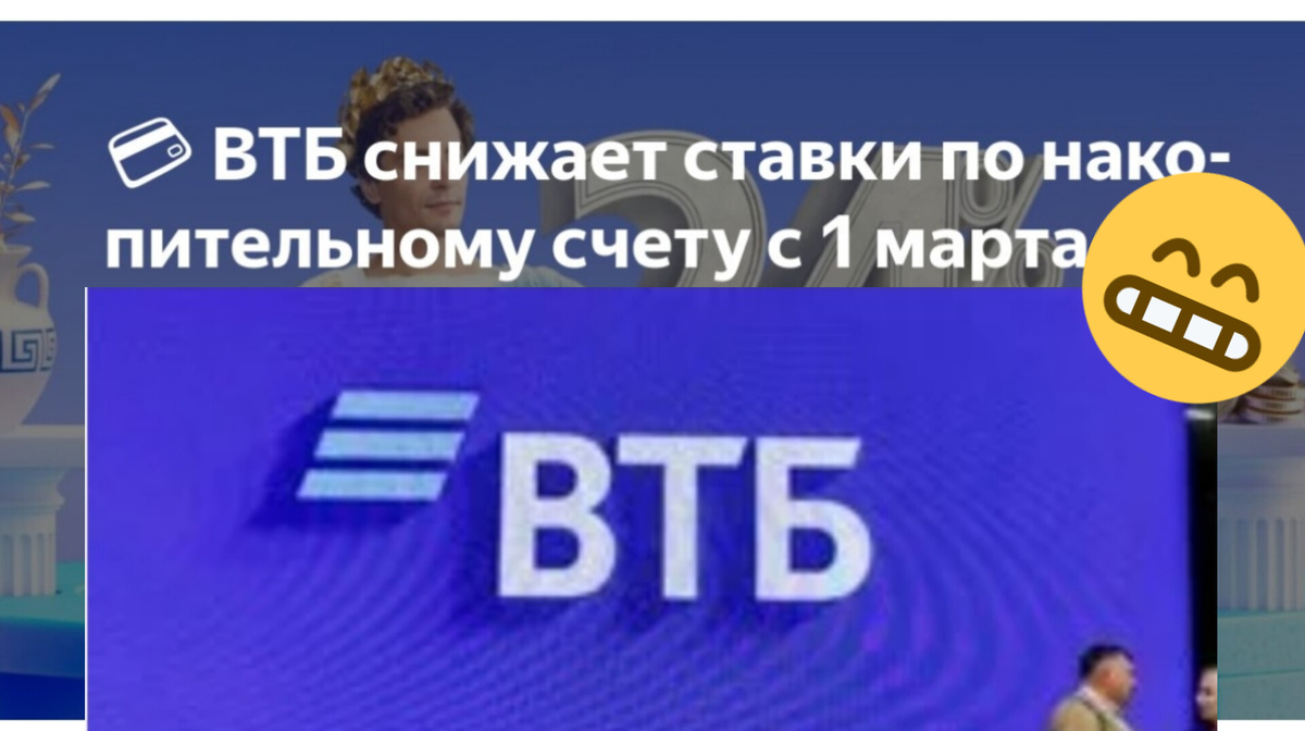 Итак ребята сегодня подводила итоги по накопительным счетам увидила что ставка на втб снизилась поэтому верстаю статью информацию из интернета. Не все так сладко как хотелось 😊😊😊🤔💸💰💰💰 ВТБ с 1 марта 2025 года снижает приветственные и базовые ставки по накопительному счету на 1 процентный пункт. Информация об этом отражена на сайте банка в тарифах. По накопительному ВТБ-счёту с начислением процентов на минимальный остаток в первые 3 месяца будет действовать ставка 23% годовых (-1 п.п.) на остаток до 1 млн рублей (с пакетом Привилегия - до 10 млн рублей). По счёту с начислением процентов на ежедневный остаток приветственная ставка в первые 3 месяца составит 21% годовых на остаток до 1 млн рублей (с пакетом Привилегия - до 10 млн рублей).