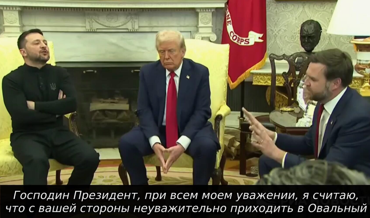 Давненько весь мир не наблюдал, как проходит педсовет в Вашингтоне. На этот раз воспитывали президента Украины. Ничего не подозревая, ученик сам напросился на встречу. Припёрся в военизированных штанах с накладными карманами и в защитном свитерке. Только что, видите ли, с передовой. Хорошо, что не в каске и бронежилете. И начал учить жизни «старших товарищей»: А ты там был? А ты знаешь? Сидите тут за океаном, деньги считаете? А ты кто такой? Представим ситуацию на житейском уровне. К вам в дом явился дальний родственник-оборванец. Ведёт себя нагло. Спорит, требует. До этого попал в беду, на него напали. Вы ему помогали три года, но ему этого мало. Появилась возможность заключить мир с агрессором, но родственничку это не надо. Хочет драться, воевать дальше. В таком случае выставляют наглеца за дверь и о помощи речи быть не может. Но это в быту. Из-за идиотского поведения Зеленского пострадают миллионы людей. Как поведёт себя Трамп, пока не ясно. Убрать Зеленского не сложно: импичмент, о