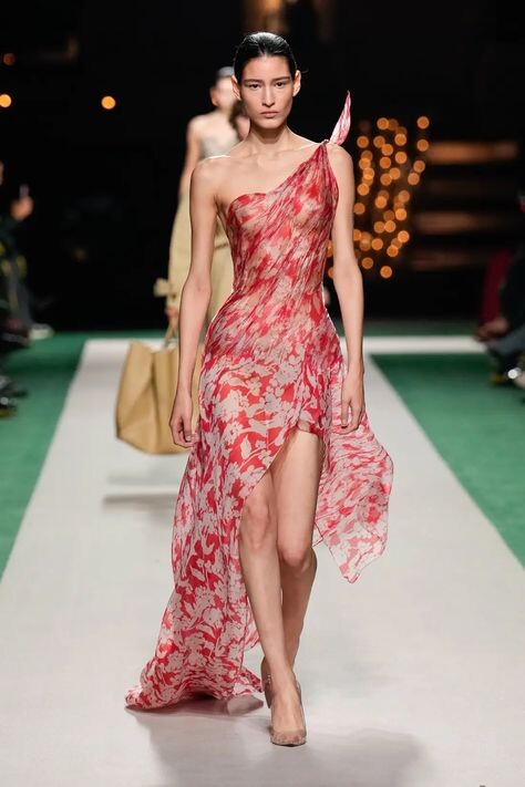 Платья с цветочным принтом остаются одним из самых востребованных трендов весны-лета 2025 года, но в этом сезоне дизайнеры делают акцент на их современных интерпретациях. Вместо классических мелких цветочных мотивов на подиумах появились абстрактные и крупные узоры, часто напоминающие нарисованные композиции или акварельные пятна. Эти смелые узоры придают платьям артистичный и современный вид.