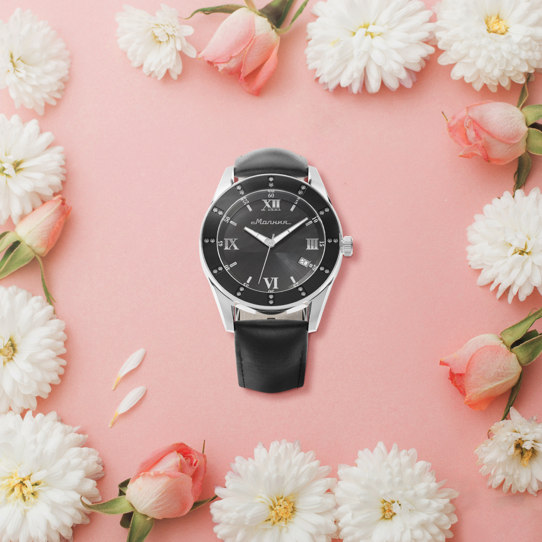 8 марта — это особенный день, когда мы с особым чувством выражаем женщинам свою любовь и уважение. В качестве подарка на этот праздник часы от часового завода «Молния» станут не только стильным аксессуаром, но и символом внимания и заботы. Среди богатого ассортимента моделей выделяются две, которые идеально подойдут для разных стилей и предпочтений: часы «Жемчуг» и спортивные часы коллекции Energy. Часы «Жемчуг» — это воплощение женственности и изысканности. С кварцевым механизмом Ronda 715, они обеспечивают точность и надежность. Корпус диаметром 39 мм выполнен из нержавеющей стали с зеркальной полировкой, что придает часам роскошный вид. Двусоставный циферблат из перламутра и стали с черным покрытием создает уникальный контраст, а сапфировое стекло защищает от царапин и повреждений. Особое внимание привлекает безель, украшенный 24 белыми цирконами, которые добавляют часам мягкое мерцание, делая их идеальными для вечерних выходов или торжественных мероприятий. В дополнение к базовому