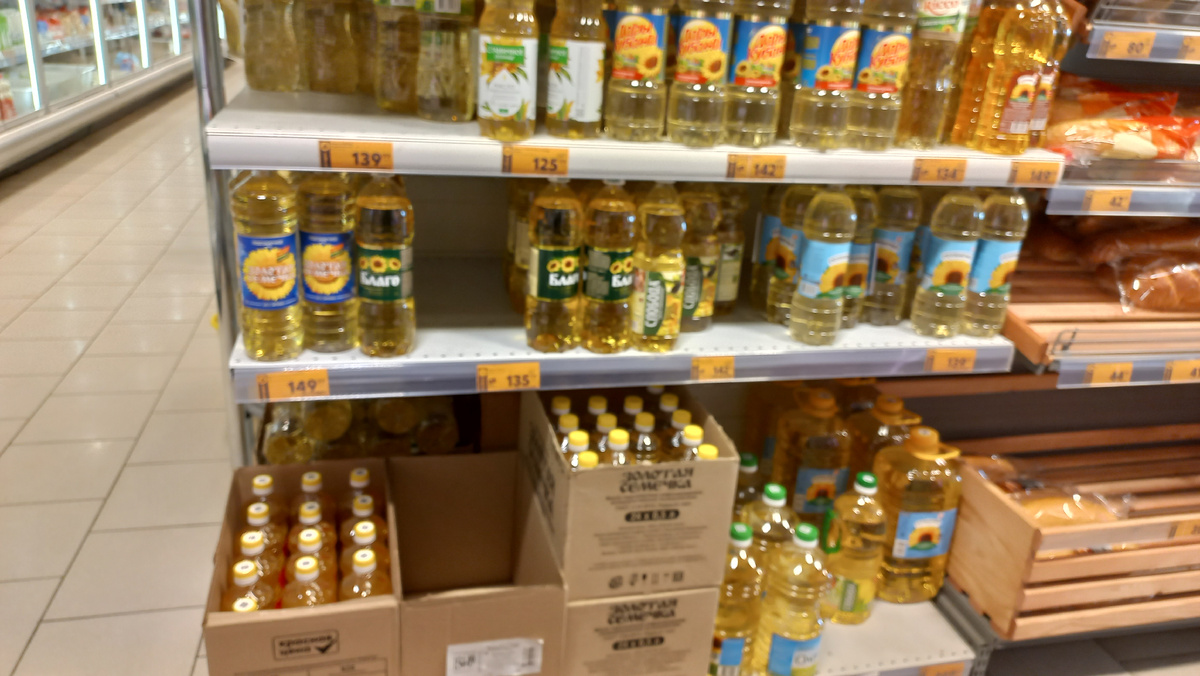 Вот цены на подсолнечное масло (рафинированное) с жёлтыми ценниками:
