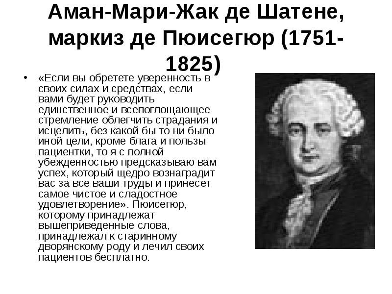 Первым из них был Франц Месмер, о котором я писала в статье "Месмер: по пути Нострадамуса". Ну, а второй исторической фигурой является ученик Месмера и герой сегодняшней заметки. Он родился 1 марта 1751 года, и звали его Арман-Мари-Жак де Шастене, маркиз де Пюисегюр. В историю гипноза он вошел как маркиз де Пюисегюр.