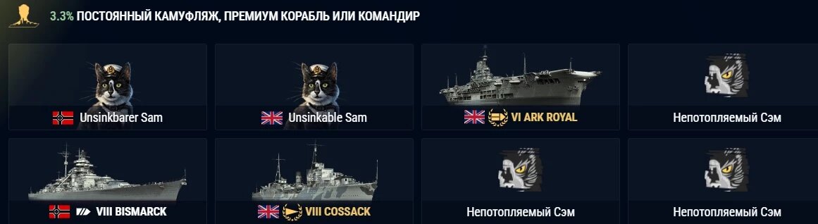 Четвероногие товарищи со своенравным характером не только являются одним из символов весны, но и с давних времен считаются талисманами, приносящими удачу морякам. В честь праздника в игре “Мир Кораблей” открыта цепочка боевых задач с тематическим контентом. Есть немало историй о том, как кошки становились частью экипажа военного корабля и служили на флоте, защищая припасы от грызунов, а моряков — от грустного настроения. С 1 по 8 марта выполните все задания, чтобы получить символ «Кот-командир» и стандартные расходуемые бонусы. А главной наградой станет контейнер «Непотопляемый Сэм». Из контейнера «Непотопляемый Сэм» можно получить: