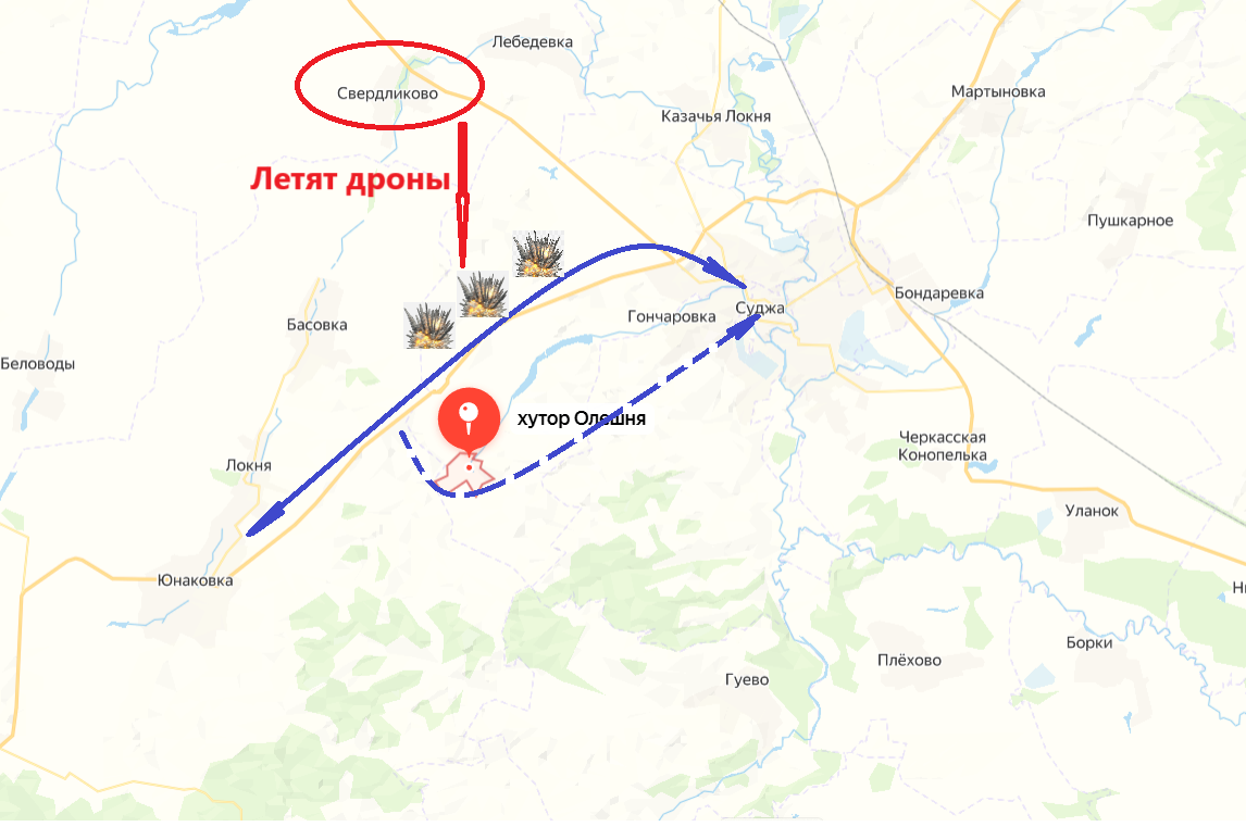Интересную информацию распространяют российские каналы. Докладываю. Украинская группировка в Курской области страдает из-за огневого воздействия российских войск по трассе Юнаковка-Суджа. Это основная артерия, по которой идет снабжение оккупационных частей ВСУ техникой, боеприпасами и продовольствием. По ней вывозят раненых и поставляют на убой новый личный состав. Поверьте, товарищи, это не пропаганда с моей стороны, а реальное положение дел. Из-за профессии околовоенного блогера, мне приходится читать их каналы. Украинцы стонут и призывают готовиться к худшему. Худшее для них - это окружение и уничтожение группировки ВСУ на русской земле. Короче, видя такое положение дел, какой-то хитрый украинский офицер дал приказ найти безопасную дорогу. Решили враги перегнать технику южнее основной асфальтированной трассы через хутор Олешня. Но почему-то не учли, что мы русские. С нами Бог, природа и дороги. Точнее, отсутствие дорог в некоторых местах. Интернет показывает, что сейчас в Судже