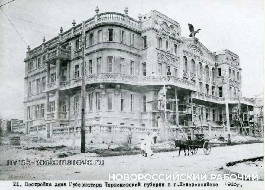 Загадки истории Новороссийска. Снос легендарного Дома с орлом — ошибка архитекторов? Жительница Новороссийска рассказала «Новороссийскому рабочему» уникальные подробности о легендарном Доме с орлом. Светлана Александровна Полякова – коренная жительница Новороссийска, родилась в августе 1938 года. В ее семье всегда читали «Новороссийский рабочий», и в свои 86 лет она продолжает выписывать нашу газету. После публикации статей о Доме с орлом Светлана Александровна позвонила в редакцию, чтобы поделиться воспоминаниями об этом здании. Дом с орлом – легендарная резиденция Черноморского губернатора – считался самым красивым зданием от Анапы до Сухума. Его строительство началось в 1914 году, и газеты писали: «На Дмитровской улице (ныне ул. Энгельса), вблизи мужской гимназии, вчерне закончена постройка дворца губернатора. Здание имеет три этажа, величественное с виду. После окончательной отделки оно будет лучшим украшением города. Стиль здания смешанный, с колоннами, барельефами, нишами и фигур