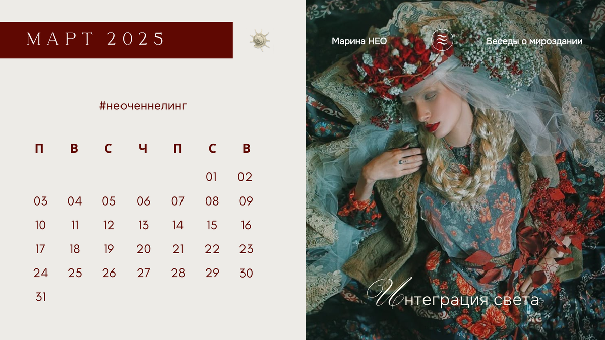 Я – Марина Нео: духовный психолог, регрессолог, исследователь глубинных процессов Души. Подпишись на телеграмм-канал Беседы о мироздании. Март — месяц распаковки и активации.