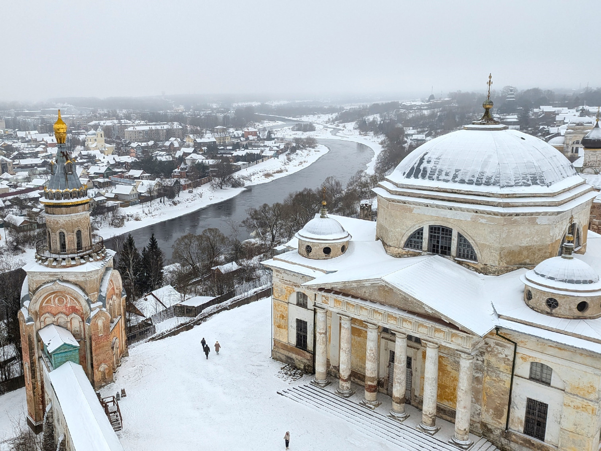 Однажды я спросил у своего товарища, который много поездил по городам и весям, какой малый город России ему понравился больше всего. Тот сразу ответил: «Торжок». Мне это запомнилось. И вот по оказии я смог побывать в этом старинном городе Тверской губернии. Расскажу, куда мы сходили и что посмотрели. Начать изучение достопримечательностей удобно с площади 9 Января — там большая парковка в историческом центре. С площади сразу видим, что представляет собой Торжок сегодня — смесь былой роскоши и нынешней разрухи. Красивые старинные дома в отличном состоянии стоят бок о бок со своими менее удачливыми, но не менее старинными собратьями, обветшалыми и облупившимися. Для центра туристического города смотрится диковато. С площади 9 Января по Новгородской набережной, любуясь видами, можно дойти до одной из главных достопримечательностей Торжка — Борисоглебского монастыря. Это впечатляющее место с большой историей. К сожалению, много построек монастыря находится в плачевном состоянии и до сих п