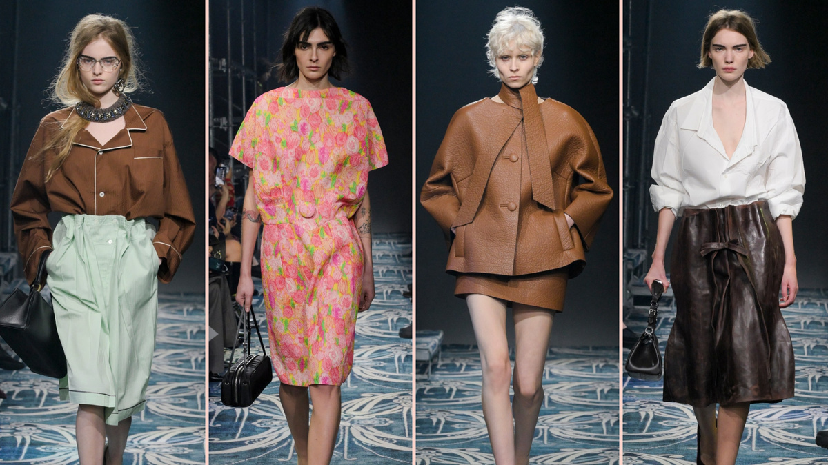 На показе Prada брутализм сочетался с барокко. В Fondazione Prada на окраине Милана модели ходили по строгим подиумам, украшенным строительными лесами, а ковер был разработан костюмером и частым сотрудником дома Кэтрин Мартин. Гости, среди которых были Хантер Шафер, Симона Эшли и Карина из Aespa, сидели в первом ряду. В сезоне осень-зима 2025 Миучча Прада и Раф Симонс заявили, что хотят переосмыслить определение женственности и красоты. В результате получилась коллекция, в которой женское (структурированные сумочки, туфли с острыми углами, полные юбки) смешалось с неопределенным (растрепанные волосы, структурированные толстовки, пижамные наряды), как будто спрашивая, насколько женственность заключается в том, чтобы выглядеть "презентабельно?". И для кого мы это делаем? Конечно, миссис Прада всегда была увлечена одеждой, противоположной мужскому взгляду, и здесь она обратилась к некоторым из своих давних навязчивых идей. Платья-мешки, юбки с высокой талией и пиджаки овер