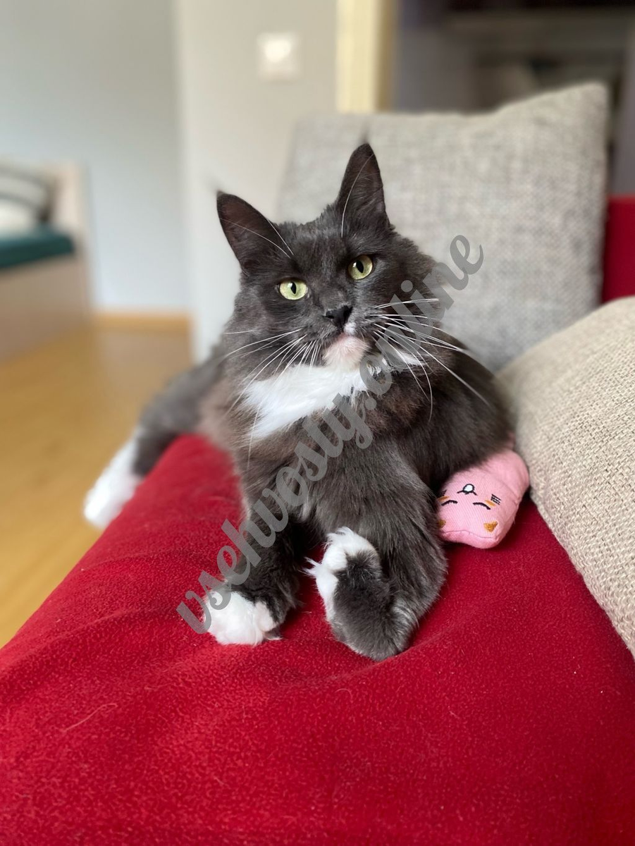 Она побаивается новой обстановки и новых людей, но когда привыкнет сразу упадет к вам на ручки, чтобы почесать пузико.