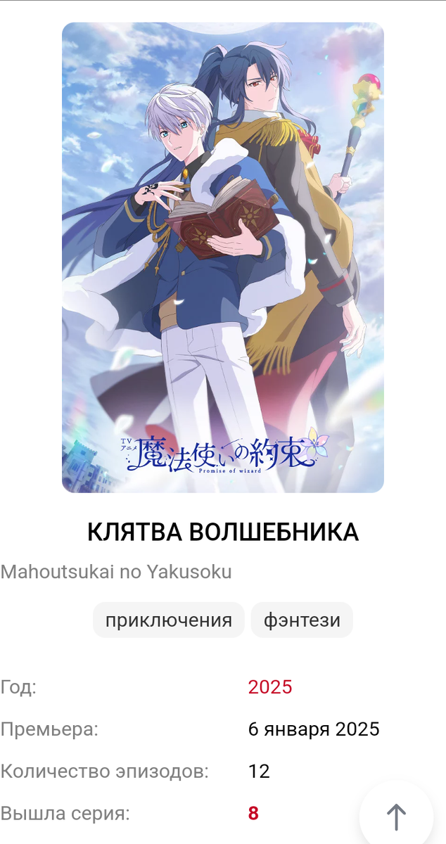 Студия: LIDENFILMS Режиссер: Наоюки Тацува Актеры: Хирофуми Нодзима, Масаоми Ямахаси,Хироки Ясумото Качество: WEB-DLRip 720p Продолжительность: 23 мин. Возрастное ограничение: 16+ Другие названия: Mahoyaku Итоговая оценка: 10 из 10 Описание сюжета «Клятва волшебника» В лунную ночь Акира Масаки попадает в волшебный мир, где живут волшебники и люди. Каждый год они сталкиваются с гигантской, смертоносной луной, угрожающей планете. Их единственная надежда — Волшебники Мудреца, назначенные сражаться с этой сверхъестественной угрозой. Однако Акира вскоре понимает, что ее призвали не случайно — она выбрана, чтобы возглавить их в битве.
