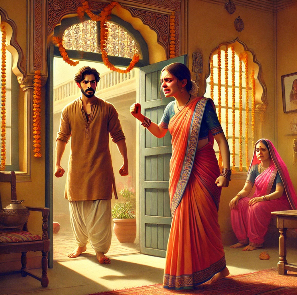 Я выбежала на улицу, где уже сгущались сумерки, и постучала в дверь тётушки Прийи — пожилой вдовы с острым языком и добрым сердцем. Она жила через два дома от нас и всегда была за справедливость, как страж старого храма Шивы.