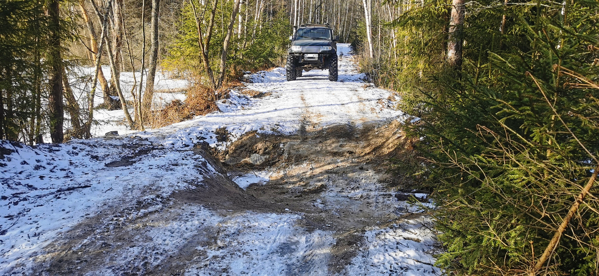 Как-то спонтанно, решил еще раз, пользуясь хорошей погодой, прокатиться в лес. За пару часов установил БТР колеса, сменил хабы на заглушки, поменял бампера, погрузил необходимый для поездки инвентарь и выехал в лес. Мне было интересно узнать, смогу ли проехать глубокую канаву и разъехавшиеся плиты, на дороге, идущей по дамбе в глубь леса. По которой в основном теперь ездят мопеды и квадроциклы. Хотя попался даже след снегохода. Но машина не подвела и уверенно проехала все препятствия. Хотя нужно поработать с передней подвеской, возможно огранчив ходы на сжатие Доехав до лесного тупика, далее немного прогулялся пешком, обратив внимание, что появилось много заячьих следов, видимо у них начался гон. Приметил новые локации, для установки фотоловушек. Время пролетело быстро, поехал обратно. Колеи, лужи, болота замерзли и машина опять проехала везде, не ломая лед, переезжая бревна, ямы и кочки. Вернувшись в гараж, за пару часов, вернул все в исходное состояние. На следущий д