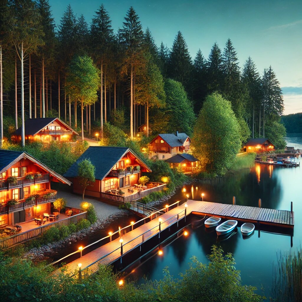 Расположена на берегу озера, предлагает комфортные коттеджи и активный отдых на воде.