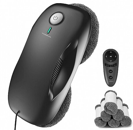 Этот стеклоочиститель облегчает уход за окнами и зеркалами, автоматически распыляя жидкость и удаляя грязь без разводов при помощи микрофибровых салфеток. Тонкий корпус и вакуумный мотор создают усилие до 7 кг, что предотвращает падения даже на скользких поверхностях. Гаджет обрабатывает 1 м² за минуту, двигаясь спиралевидно и не пропуская пятна. Двойная система питания автоматически активирует резервный аккумулятор при отключении от розетки. Иногда робот теряет траекторию, но кнопка коррекции на корпусе перезапускает алгоритм. Несмотря на эти недостатки, модель не требует сложного монтажа или профессионального обслуживания, что позволяет справиться с управлением даже ребенку.