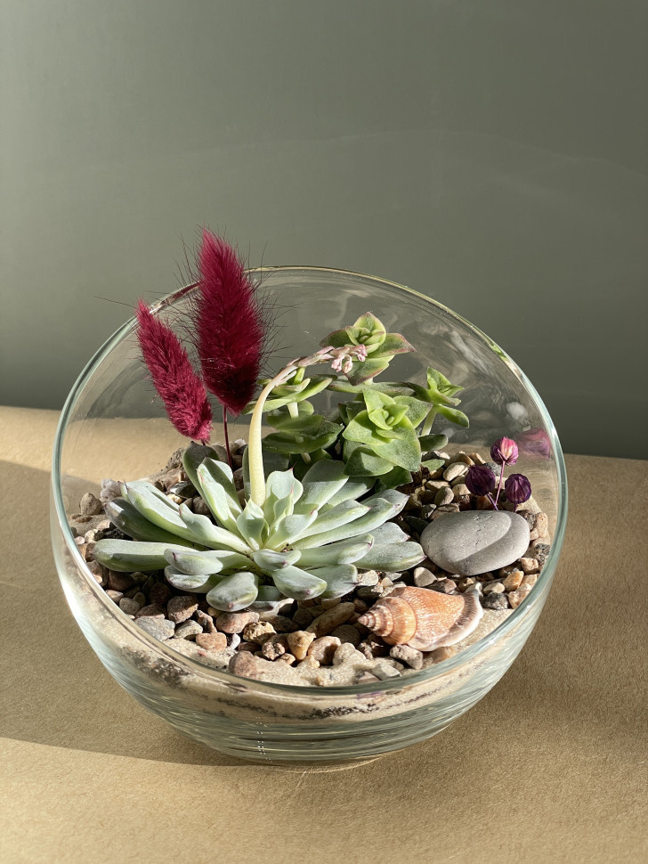 Когда праздник скоро, а ты снова не подготовился, приходится действовать решительно. Можно купить что-то на скорую руку, но не хочется дарить бестолковую вещь. Цветы - само собой, но этого мало. Можно подарить готовый флорариум с суккулентами. Очень хороший подарок. Суккуленты живут в жарком и сухом климате. Поэтому им не нужен особый уход. Достаточно поливать их раз в 2 недели и держать в сухом месте. Кстати данный флорариум можно купить по этой ссылке https://chumiflowers.ru/product/florarium-polusfera-s-sukkulentami-s/ Кстати флорариумы с суккулентами делают в самых разных формах. Изотермические фигуры. Эдакий микро мир или маленькая планета. Если вы не знаете какой выбрать флорариум. Можно просто приобрести подарочный электронный сертификат. Распечатать его или просто отправить сообщением человеку. Получатель уже сам выберет на что потратить и какую композицию заказать. Так что пользуйтесь советом, дамы и господа. Купить подарочный сертификат.