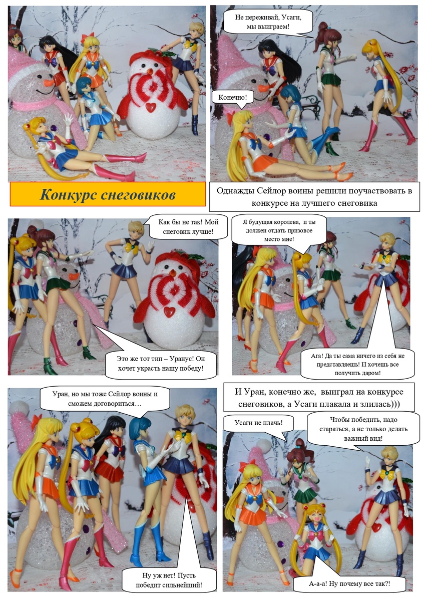 Долгожданное продолжение! Эти комиксы были придуманы более 10 лет назад, когда я увлекалась аниме-фигурками. Поэтому прошу не судить строго) Первая и вторая часть здесь: Предупреждение! Отступления от канона! События разворачиваются по альтернативному сюжету 1 сезона. Основная пятерка воинов дружит с Хотару (с которой все в порядке и никто в нее не вселялся) и, благодаря видениям Ами, знает о существовании Сейлор Плутон и Чибиусы. Тем временем, Уран и Нептун, наконец-то, выходят из тени, но ничего хорошего нашим героиням это не сулит. К тому же, всплывает зловещая правда об истинной Лунной принцессе... Но это не самое страшное: грядет конец света, а Уран и Нептун внаглую бросают вызов остальным воинам... Лирическое отступление: позже Минако узнает от котов, что Усаги не является настоящей принцессой Луны и наследницей Серенити. Необходимо отыскать настоящую принцессу. Луна и Артемис советуют Минако помалкивать до поры до времени и никому ничего не рассказывать, даже друзьям. Враги не д