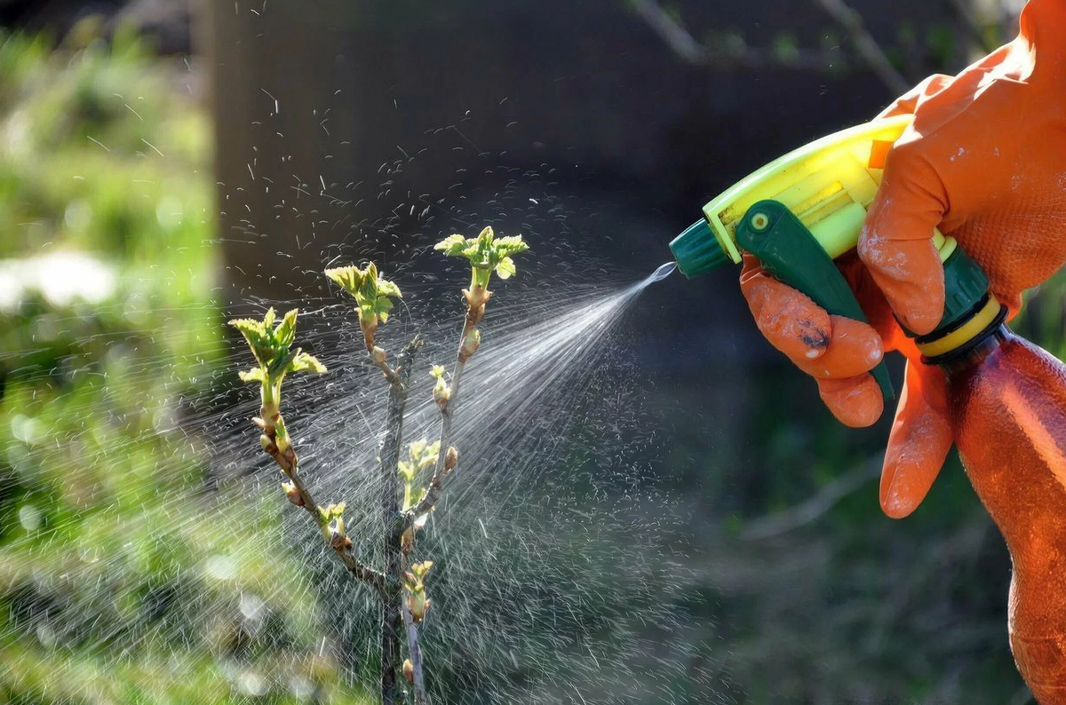 - Используйте опрыскиватель с мелким распылением, чтобы препарат равномерно покрыл кору, ветки и почки.