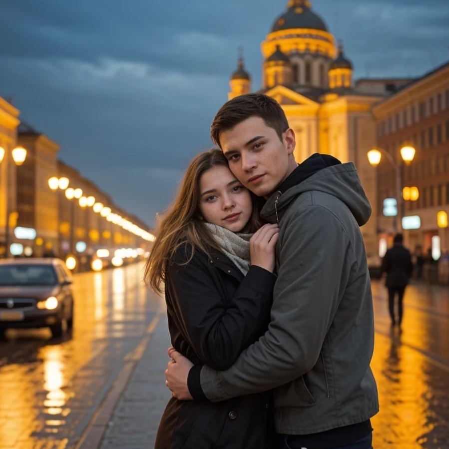 Петербургскую осень не любили многие — дождливая, промозглая, с вечным ветром, она загоняла людей в метро и кофейни. Но им двоим было не до непогоды. Они неслись по Невскому, заливались смехом, а город светился огнями.