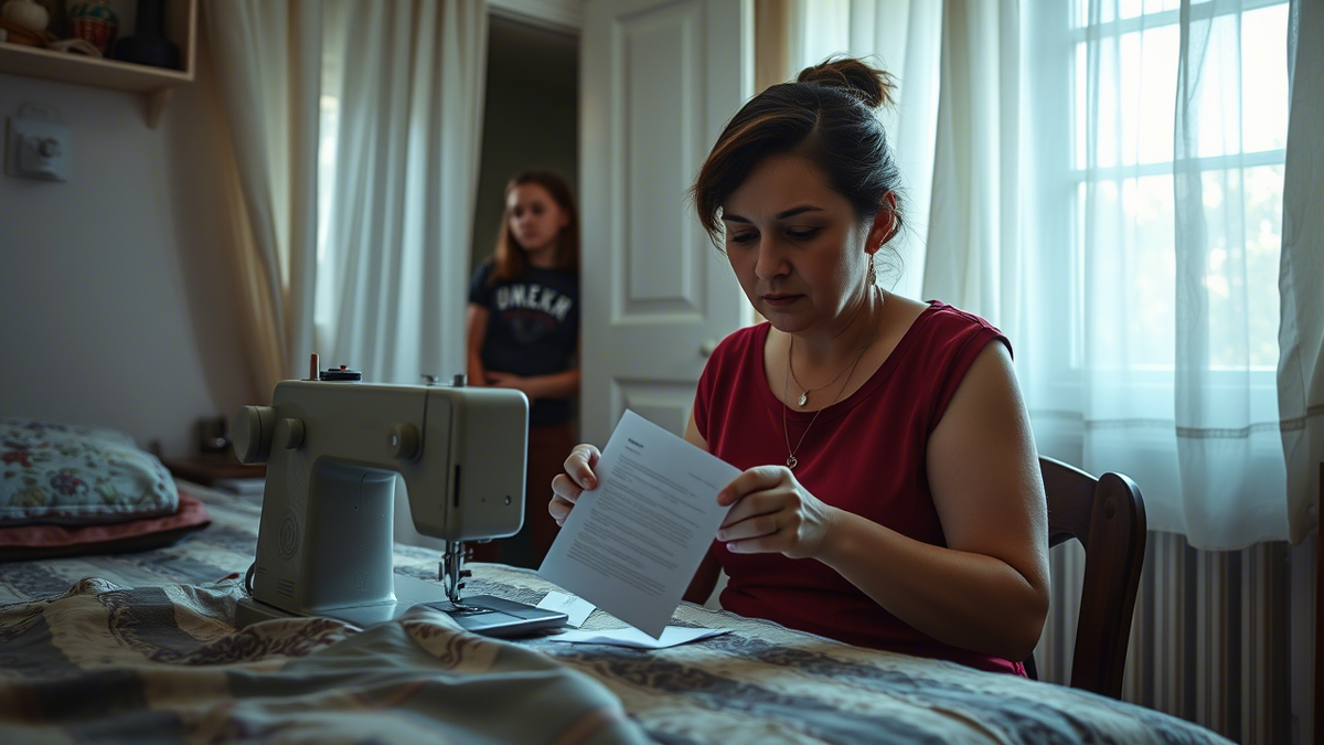 Я сидела за швейной машинкой в спальне, подшивая Машину юбку, когда Катя швырнула записку мне на стол. Листок — мятый, как старый фантик, — упал прямо на ткань, иголка дёрнулась, и строчка пошла криво, как моя жизнь в последние дни. Я подняла глаза — дочка, 16 лет, стояла в дверях, руки скрещены, взгляд — как нож в масло.