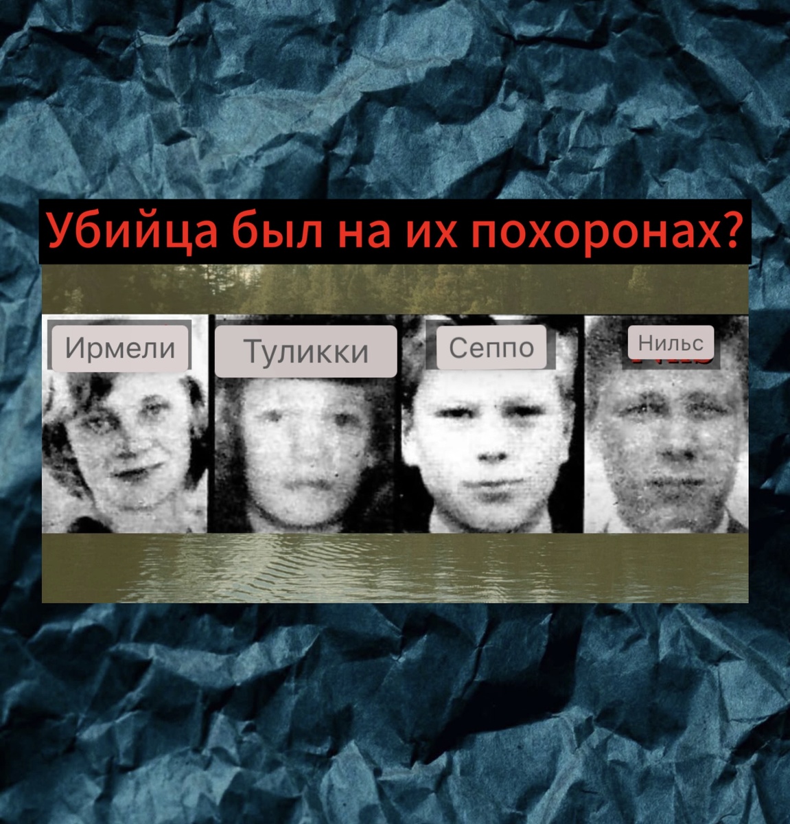 Первый человек, на которого легли подозрения полиции, был жестокий преступник по имени Пентти Сойнинен. Этот четырнадцатилетний мальчишка отбывал наказание в колонии для несовершеннолетних, которая находилась недалеко от озера Бодом. За пару дней до убийства он сбежал из мест заключения и прятался где-то в лесах. Полиция не смогла найти никаких доказательств его причастности. Да и разве мог бы парень его возраста одолеть четверых подростков, которые старше его?