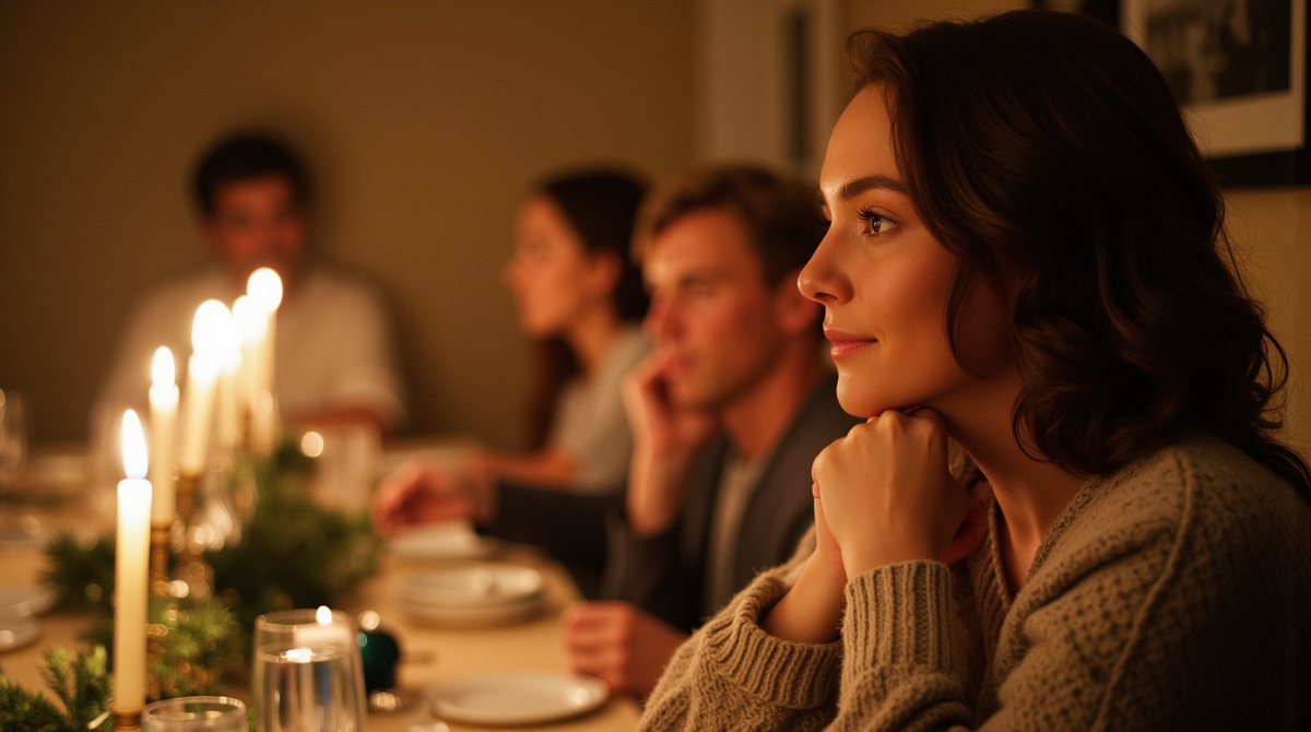 Наталья — комок нервов и страха. Её пальцы сжимают край скатерти — той самой, что помнит не одно семейное торжество.
