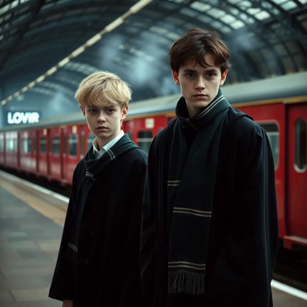Шум поезда, куча голосов и цветов — всё смешалось воедино. Мои приглаженные светлые волосы грозились растрепаться под вихрем всей суматохи. Я часто оборачивался на клетки с совами, один раз почти вскрикнул, когда мальчик рядом со мной чуть не запустил из палочки змею, за что получил от матери смачный подзатыльник. Волоча за собой чемодан, к которому я прикрепил аквариум с жабой, я пытался найти глазами Тома. Тот стоял недалеко от входа в поезд и уже разговаривал с юношей, на вид не старше 15 лет. Высокий, стройный как ива, он со снисхождением объяснял что-то Тому. Его руки были сцеплены за спиной, и он на что-то кивал мальчику, отчего его белёсые волосы до плеч мягко опускались и поднимались, а затем даже улыбнулся. Я остановился недалеко от них и увидел на его груди знак змеи. А ещё значок «С». Том, видимо, ему понравился, так как вскоре я услышал: «Надеюсь, ты попадёшь на Слизерин». Затем, пропустив двух девушек с синими шарфами в полоску, парень сам поднялся в поезд.