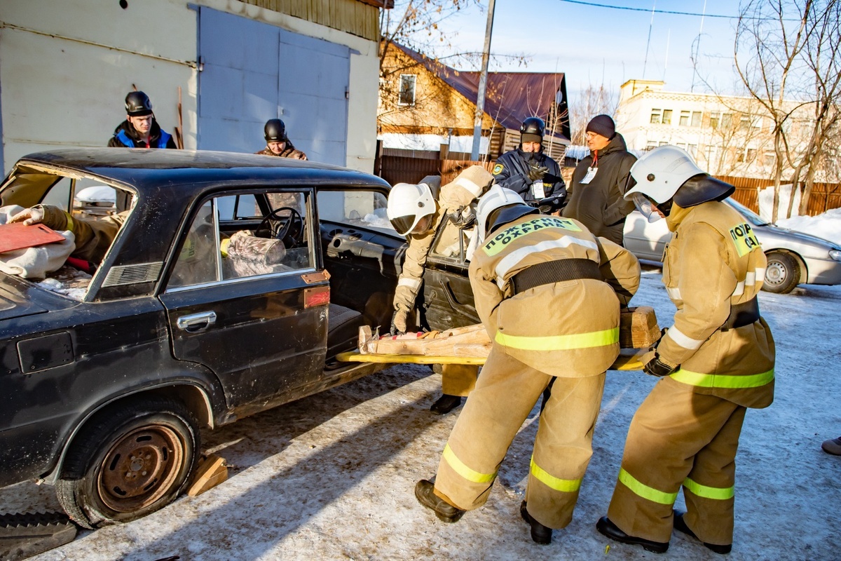 Во второй половине дня для юношей и девушек приготовили новое задание - ликвидация ДТП с пострадавшими. Для этого этапа во дворе Центра туризма стоял старенький жигуль. По команде участники приступали к осмотру условного места происшествия, его оцеплению и спасению пострадавших. Ребятам пришлось и стёкла в машине выбивать, и двери вскрывать. А ещё нужно было правильно определить полученные пассажиром травмы, чтобы оказать ему первую помощь.