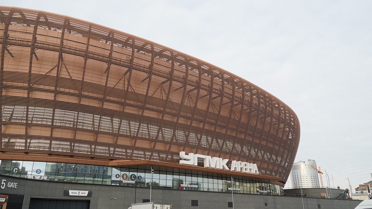Арена имеет сетчатый металлический каркас медного оттенка в соответствии с фирменным стилем УГМК. Фото Юрий Капустин