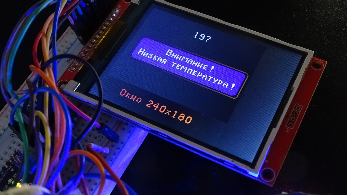 Функция которая выводила текст на экран, была написана самой первой, после того как был написан элементарный прямоугольник. И я не мог нарадоваться, насколько быстро выводился текст на экран. Буквы рисуются поэлементно, а не попиксельно, как в большинстве библиотек. Буквы не подтирают фон под собой…
