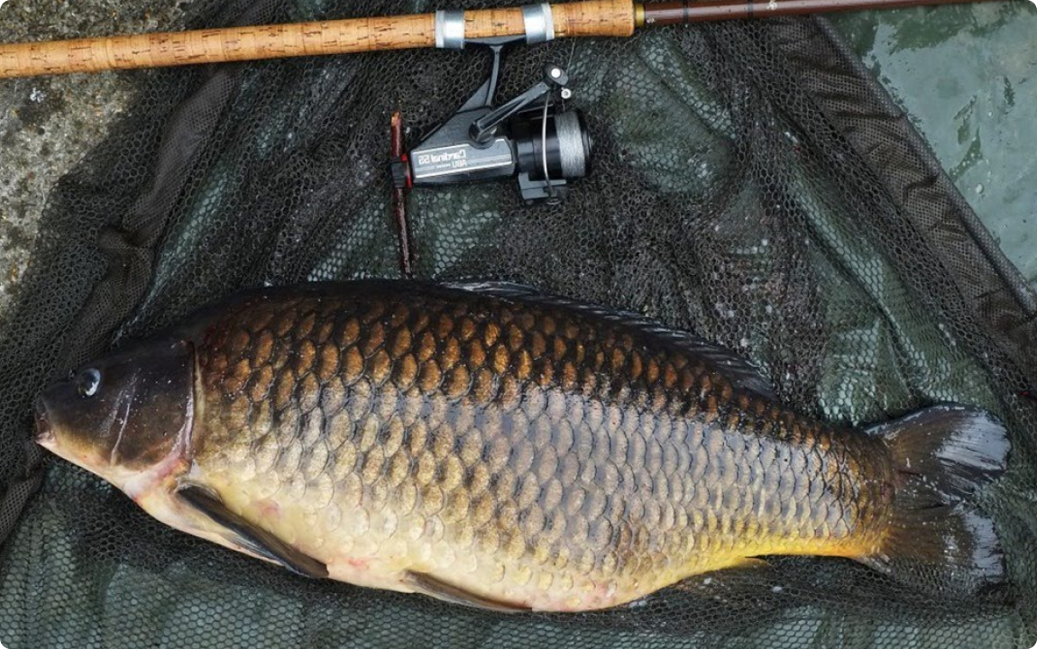 - Используйте подсак с длинной ручкой — карп часто делает последний рывок у берега.