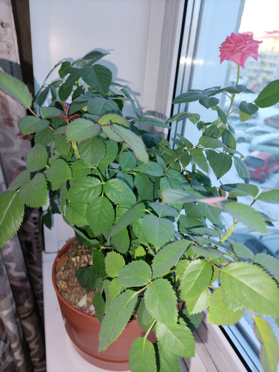 Хочу поделиться маленьким советом, девушки может кому пригодится. Мне часто дарят розы в горшках. Неделя и роза погибла. А я не цветовод от слова совсем. Как то жалко цветок. Осенью мне снова дарят розу в горшке. За морочилась. Зашла в цветочный магазин и спросила как цветок сохранить. Мне продавец рассказала, что нужно купить подкормку и поливать розу 1 раз в 3 недели по колпачку подкормки на стакан воды. А простой водой поливаю два раза в неделю. Роза любит холод, такая прям сибирская роза. Поставила на окно прям под проветривание -зимой!? А ещё нужно обрезать под корень. Обрезать не стала, жалко. Простояла всю зиму зелененькая и к 23 февраля зацвела. Получилось. Не знаю как дальше будет, но пока -живая.