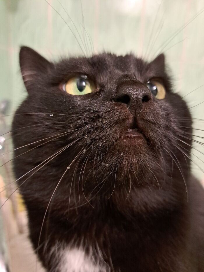 Наш своенравный и независимый кот Марс. Почти 9 лет назад мы с сыном майским погожим деньком гуляли в детском парке. Я сидела на скамейке, когда сынок, запыхавшись, прибежал сообщить, что "какие-то бабушка и дедушка там котёночка вынесли на прогулку, в коробке, и всем предлагают забрать". Дедушка и бабушка оказались давними знакомыми. Народившихся котят от своей кошки они всех раздали - Марсик остался последним. Возможно, его не хотели брать из-за цвета - черный, а может, настораживал его неласковый нрав. Но меня, свою хозяйку, он любит и всегда защищает. Если ему кажется, что муж или сын в пылу спора слишком громко и эмоционально со мной не соглашаются, то может куснуть или царапнуть за ногу, напомнив, что "мама тут под защитой Марса". Вычесывать шерстку тоже разрешает только мне. Любит куриную печенку и пить водичку из-под крана, стоя задними лапками на ванне, а передними на раковине (на фото как раз момент, когда он попил). Пост автора OrdinaryWoman. Читать комментарии на Пикабу.