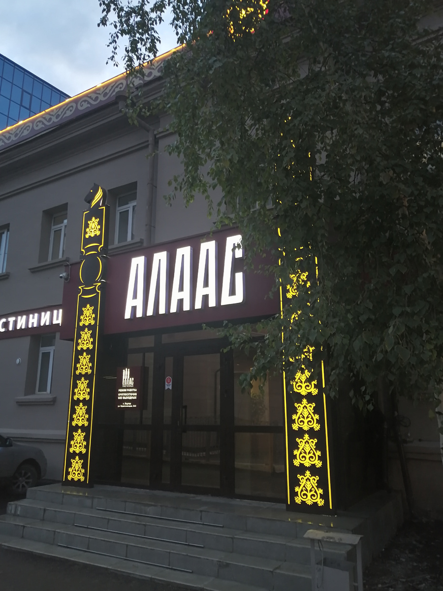 Якутск мы посетили впервые. При выборе гостиницы для проживания, мое внимание привлек отель «Алаас» потому, что он позиционировал себя не просто, как отель, а как отель-музей, что еще нужно туристу в новом для себя городе?! И так, подъезжаем на такси из аэропорта к отелю. Фасад отеля, расположенного в двухэтажном здании: "Алаас"– слово, которое часто произносят в Якутии, связанное с особенностями рельефа равнинной части региона. Алаас - это котловинный участок земли, в котором находится озеро. Для якутов алаас – сакральная зона, особый природный объект. Отель расположен в историческом центре города. В этот раз для нас это было важно, так как в Якутск мы приехали не на машине, и удобнее было поселиться в центре, чтобы осуществлять пешие прогулки. В основном, это удалось, на такси ездили только в Музей «Царство вечной мерзлоты», в связи с тем, что он находится на окраине города – в 7 км. от центра, все остальные достопримечательности Якутска были от нас в пешей доступности – макси