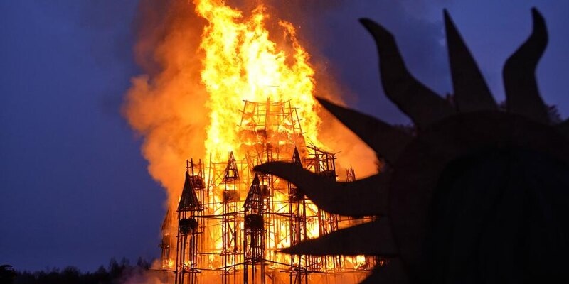 В рамках празднования Масленицы в Никола-Ленивце была сожжена деревянная мельница высотой 26 метров.